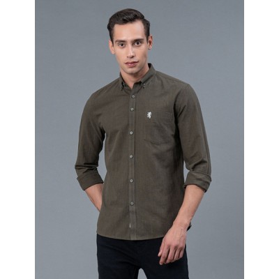 Men Regular Fit Solid Button Down Collar Casual Shirt
