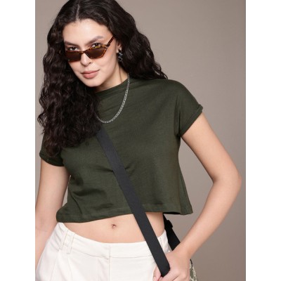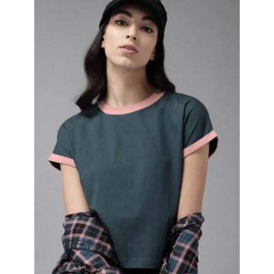 Women Solid Round Neck Pure Cotton Green T-Shirt