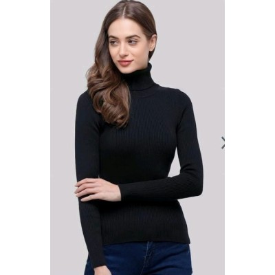 Women Self Design High Neck Cotton Blend Black T-Shirt