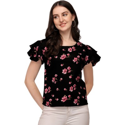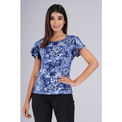 Casual Flutter Sleeves Printed Women Blue, Dark Blue, W...