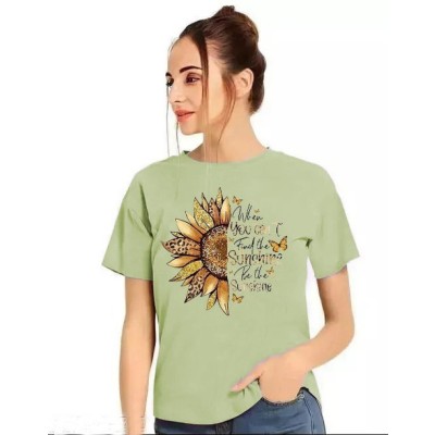 Women Graphic Print Round Neck Polyester Green T-Shirt
