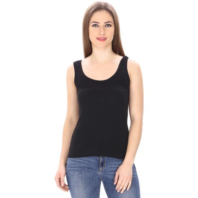 Women Solid V Neck Pure Cotton Black T-Shirt