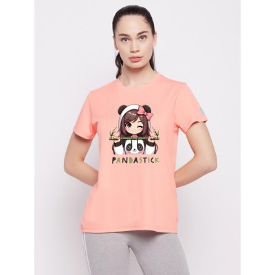Women Graphic Print Round Neck Polyester Pink T-Shirt