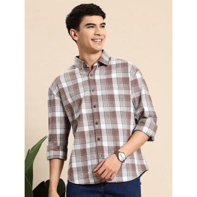 Men Regular Fit Checkered Spread Collar Casual Shirt