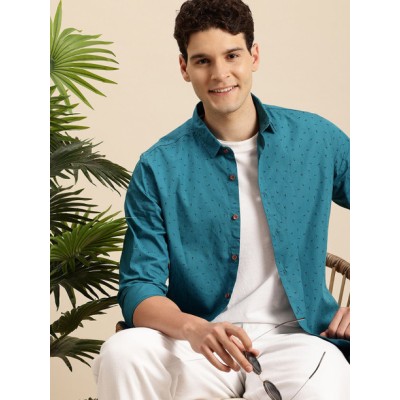 Men Slim Fit Printed Spread Collar Casual Shirt