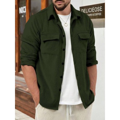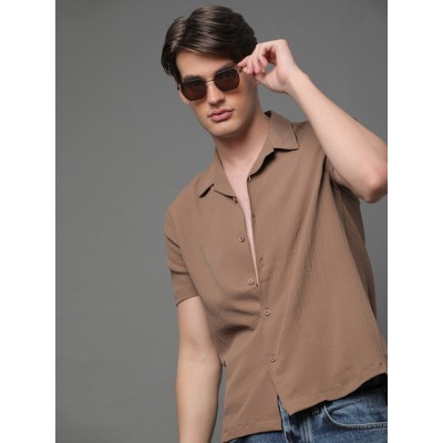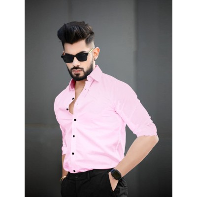 Popcorn Men Regular Fit Solid Lapel Collar Casual Shirt