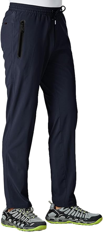 Men's Lightweight Hiking Travel Pants Breathable Athletic Fishing Active Joggers Zipper Pockets