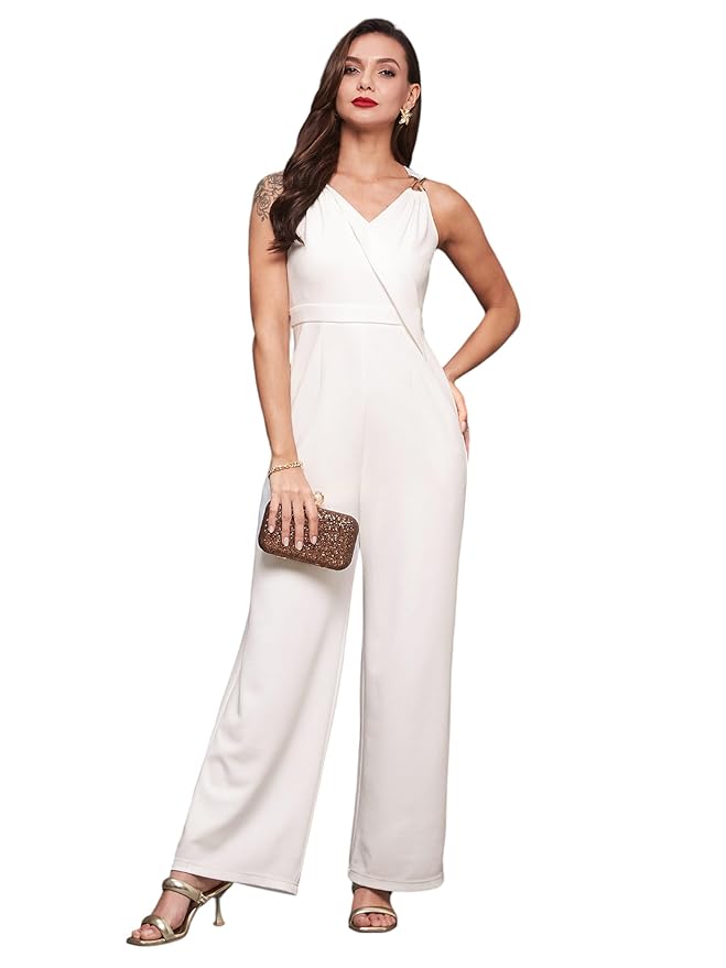 Women's Wine V-Neck Sleeveless Solid Wrap Regular Jumpsuit