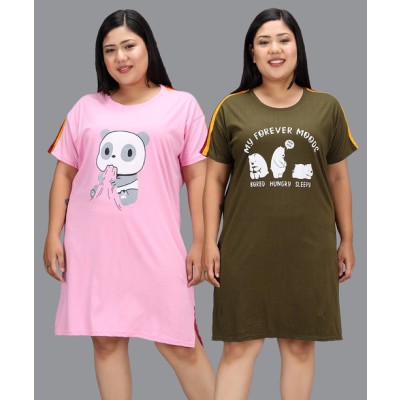 Pack of 2 Women Printed Round Neck Cotton Blend Dark Gr...