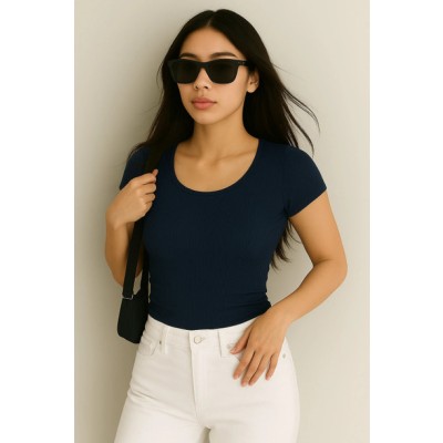 Casual Regular Sleeves Solid Women Dark Blue Top