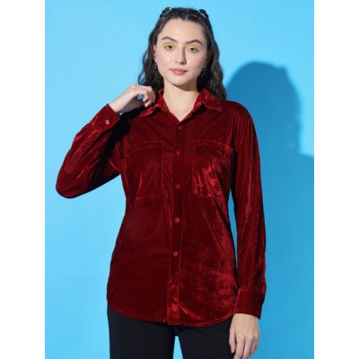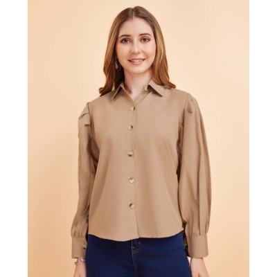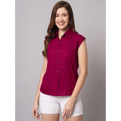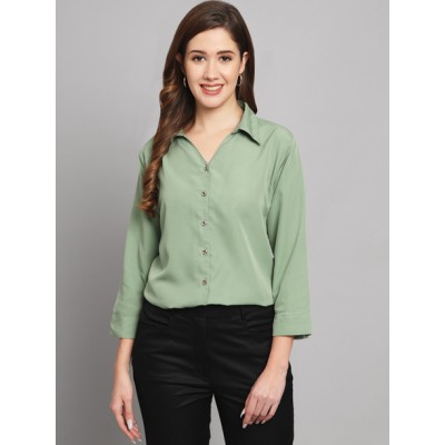 Women Regular Fit Solid Spread Collar Casual Shirt