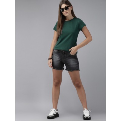 Women Solid Round Neck Pure Cotton Green T-Shirt