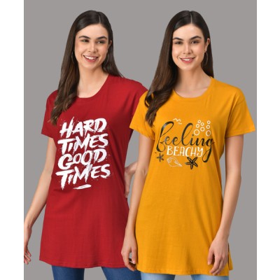 Pack of 2 Women Typography Round Neck Pure Cotton Red, ...