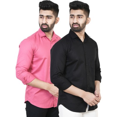 Men Regular Fit Solid Spread Collar Casual Shirt