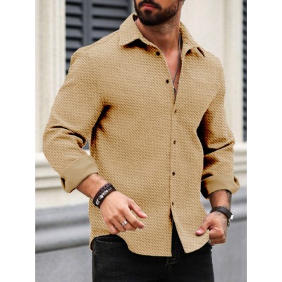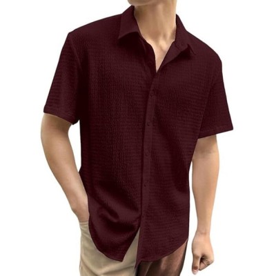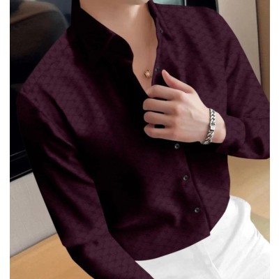 Men Regular Fit Self Design Lapel Collar Casual Shirt
