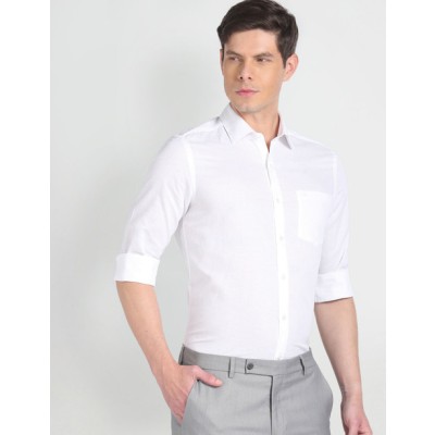 Men Slim Fit Solid Cut Away Collar Formal Shirt