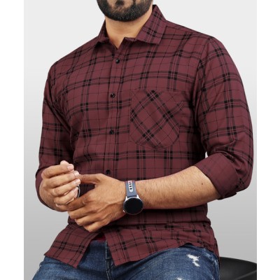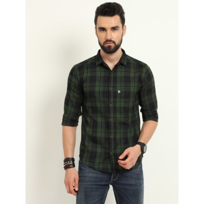 Men Regular Fit Checkered Slim Collar Casual Shirt