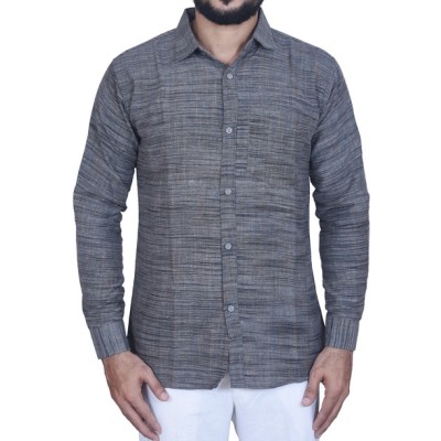 Men Regular Fit Solid Curved Collar Casual Shirt